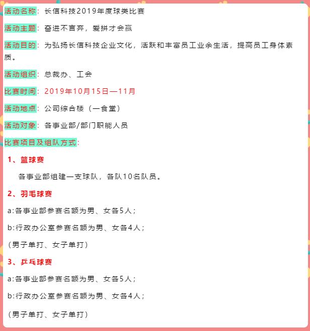 长信科技2019年度球类比赛报名开始