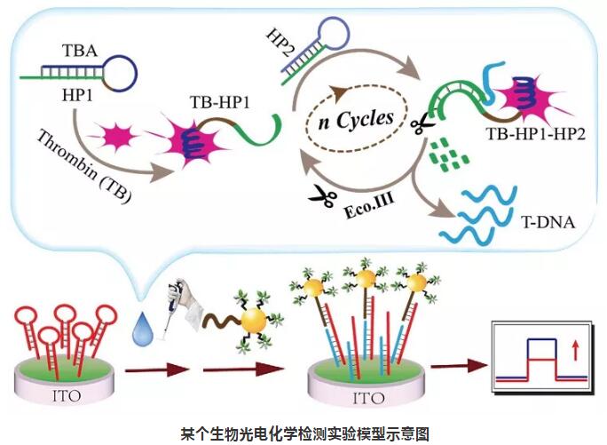 在生物检测领域,光电化学(Photoelectrochemical, PEC)分析是近年来发展起来的一种基于物质的光电转换特性而进行检测的新型分析方法,它具有灵敏度高、设备简单、易于微型化等特点。而PEC分析的性能,如灵敏度、稳定性、重现性等,最终取决于所采用光电材料的性能,即光电材料的设计合成成为关键,这也是未来光电行业的重要方向之一。